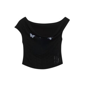 Off-Shoulder Thin Butterfly Print T-Shirt
